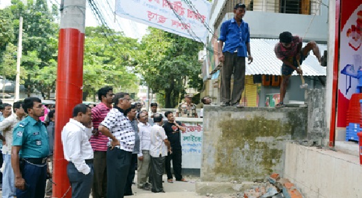 জানা যায়, বিল্ডিং কোড না মেনে এই স্থাপনা তৈরী করা হচ্ছিল। খবর পেয়ে সিটি কর্পোরেশনের কতৃপক্ষ হাজির হয়ে তা ভেঙ্গে দেন। এ সময় সিটি মেয়র আরিফুল হক চৌধুরী ছাড়াও সিসিকের প্রকৌশলী এবং অন্যান্য কর্মকর্তা উপস্থিত ছিলেন।