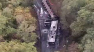 The bus was about 20 minutes into its trip and the impact was so fierce that both vehicles burst into flames, trapping the majority of those inside. An image released by BFM television showed the carcass of the bus – nothing but a collapsing, charred frame engulfed by smoke.
