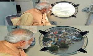 ছবিতে দেখা যায়, হেলিকপ্টারের জানালার কাঁচ দিয়ে বন্যা পরিস্থিতি পর্যবেক্ষন করছেন মোদি। প্রাথমিকভাবে টুইটারে প্রধানমন্ত্রী মোদির নিজের আপলোড করা ছবিটি রিটুইট করে পিআইবি। সেখানে দেখা যায়, কাঁচের অপরপাশে বন্যার জলে ডুবে যাওয়া অপষ্ট ধানক্ষেতের ছবি।