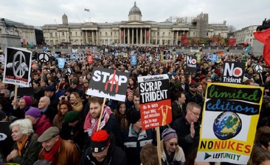 শীর্ষবিন্দু নিউজ ডেস্ক: ইউকের ট্রাইডেন্ট নিউক্লিয়ার সিস্টেম রিনিউ পরিকল্পনার প্রতিবাদে শনিবার বিশাল এক র্যালি অনুষ্ঠিত হয়েছে লন্ডনের ট্রাফলগার স্কোয়ারে। এতে আগত বিশিষ্ট রাজনৈতিক ব্যাক্তিরা শান্তির জন্য কাজ তার বিপরীতে যুদ্ধের পরিকল্পনা করা অনৈতিক এবং অকার্যকর বলে মন্তব্য করেন।